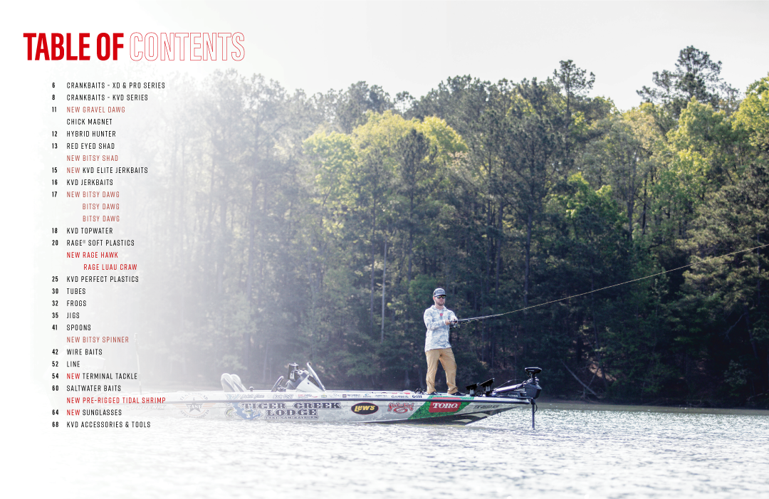 As one of the leading fishing lure companies in the world. With a product count in the thousands, creating a well organized and designed catalog took on a bit of a challenge. As the Art Director, I worked on Strike King's updated new look to elevate this years product catalog. Working with the brand and product management team, we made sure every SKU was included. The product information layout was a key component. Allowing customers to find the specific item they are looking for. Here are some of the page selects. Feel free to view the full catalog here.